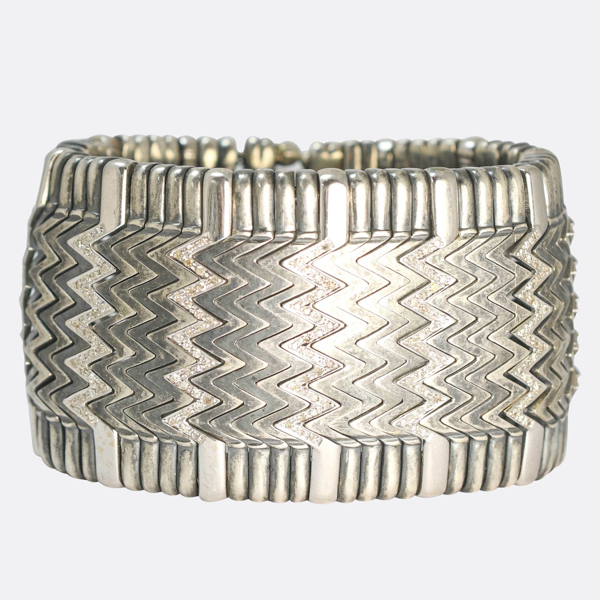 A sinuous statement piece, 1970's sterling silver & diamond chunky bracelet. Its my favourite purchase from last week! Its boxed, and is made to fit a 6.7 inch wrist.