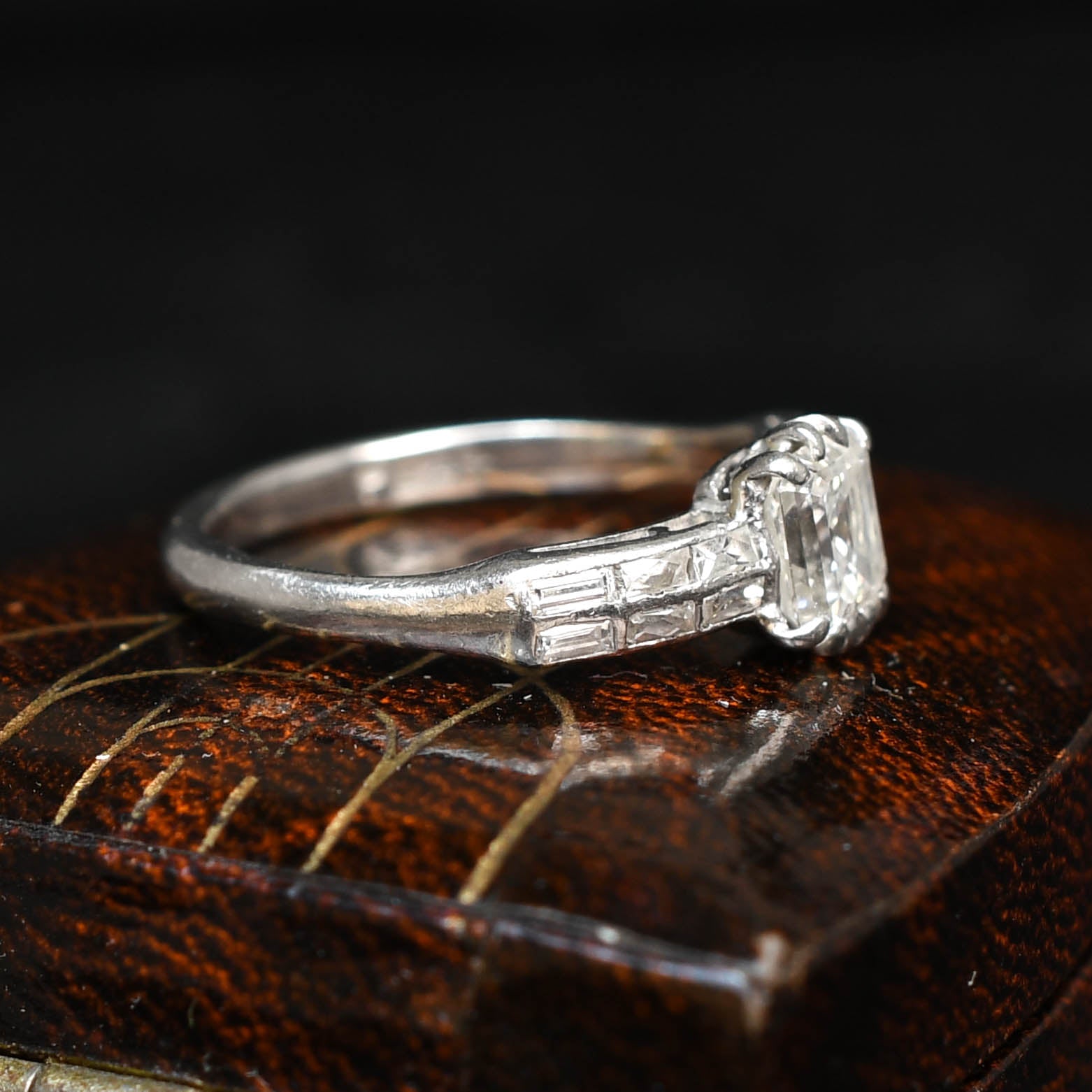 Antique 0.85ct Asscher Cut Diamond Engagement Ring