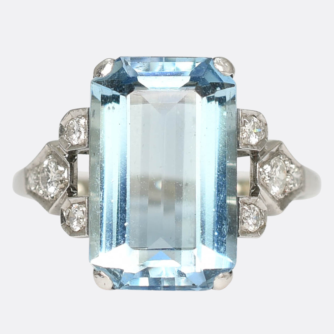 Art Deco 5.63ct Aquamarine & Diamond Ring