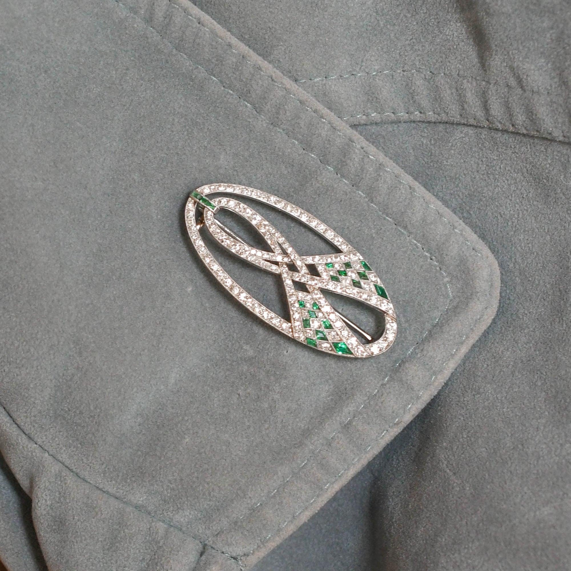 Art Deco Emerald & Diamond Ribbon Openwork Brooch