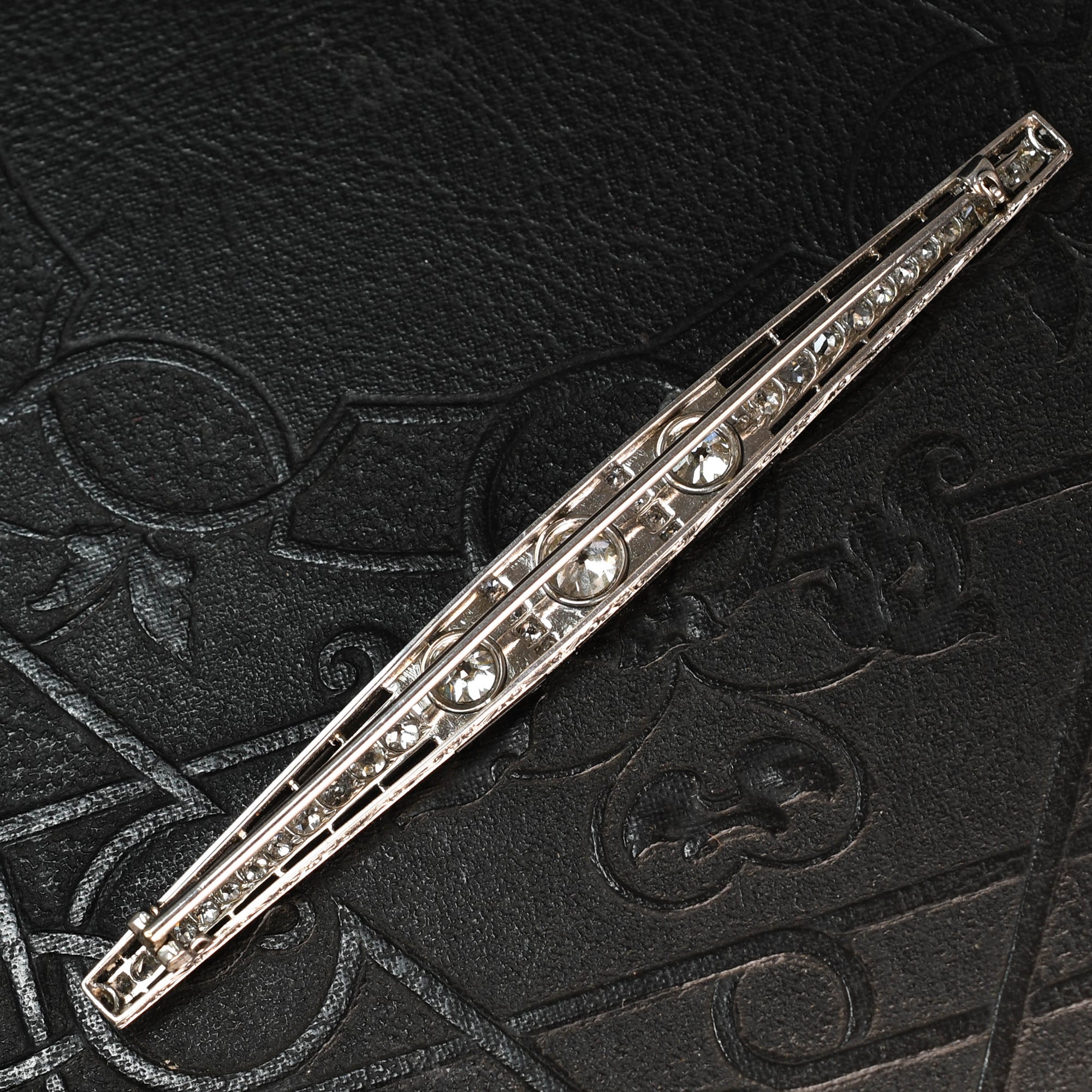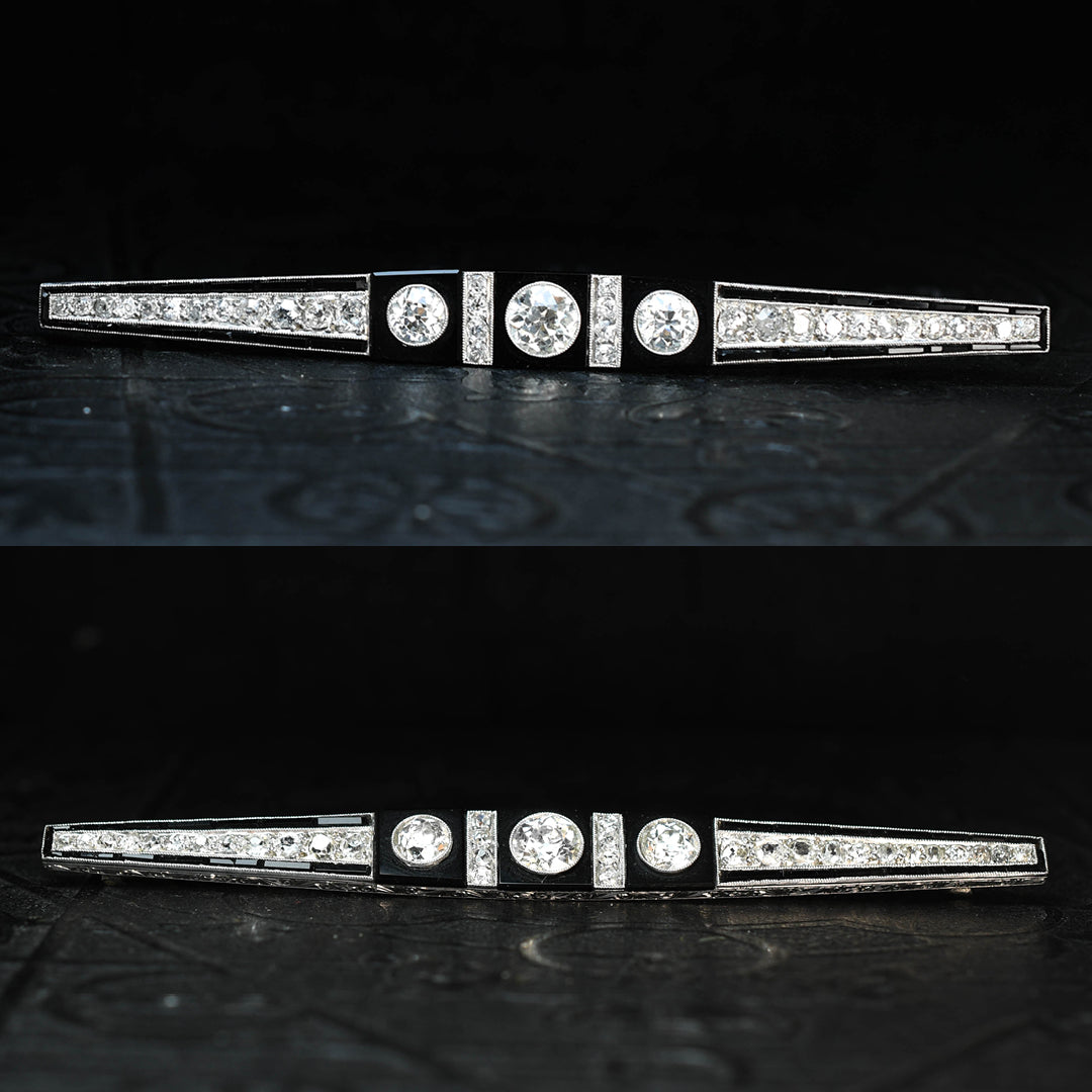 Art Deco Onyx & Diamond Platinum Bar Brooch