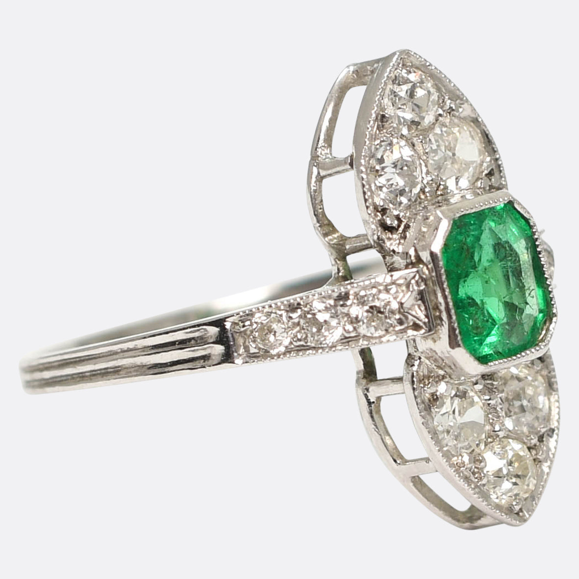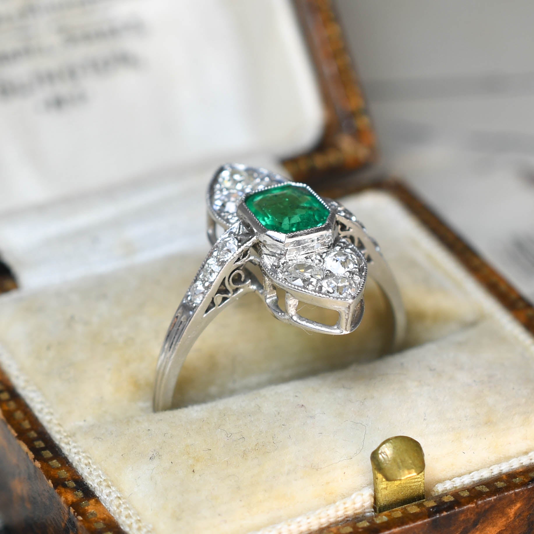 Edwardian Emerald & Diamond North/West Cluster Ring