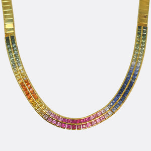 An excellent antique pinchbeck chain dating from the Georgian period, circa 1820. It's beautifully made, with textured oval links that interlink to create a spiral effect, and the barrel clasp is decorated with ribbed detail and small pommels. It's 41 inches long, looks great worn doubled or long, and it remains in great antique condition.
