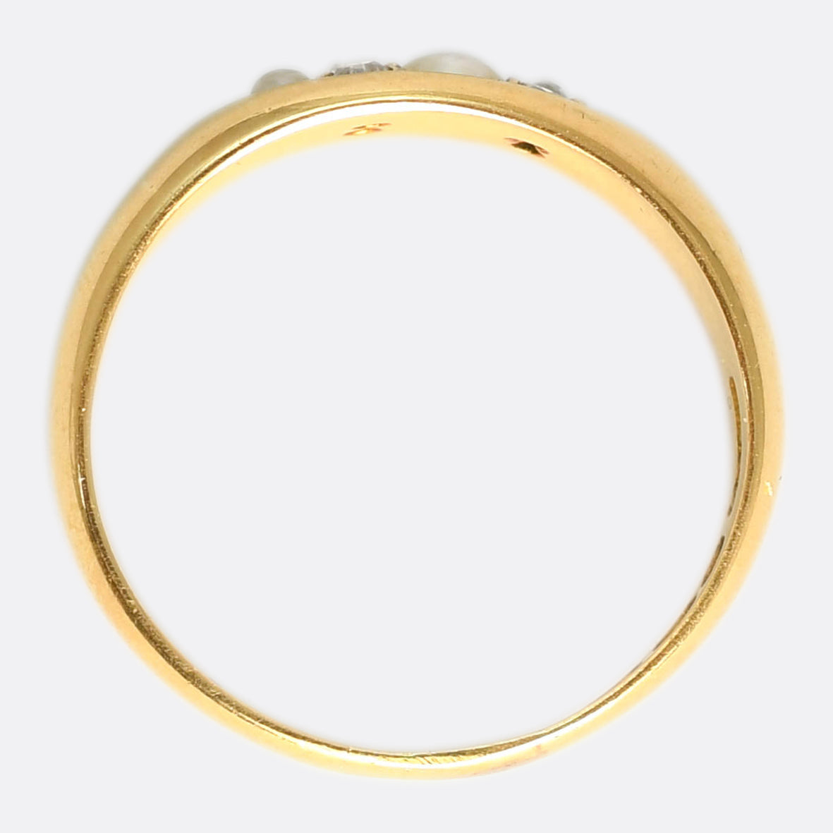 Late Victorian Diamond & Pearl Cluster Band Ring