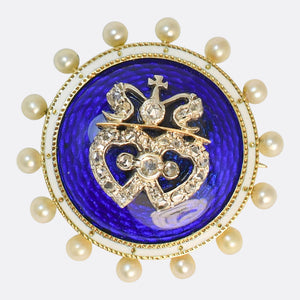 An exceptional Victorian snowflake pendant (with detachable brooch fittings) dating from the turn of the century, circa 1900. The quality and craftsmanship are particularly fine, with delicate openwork forming various floral and foliate motifs, set with alternating old cut diamonds and natural pearls. The centre of the piece is set with a large dreamy natural pearl, displaying a lovely velvety sheen. Its set with around 1.60 carats of old cut diamonds, set in silver, and 15 karat gold backed. Whoever made it had impeccable attention to detail, and its perfect for these colder, cosy, upcoming months.