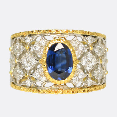 Stunning mid century diamond three-stone ring dating from the late 1940s. The band is engraved with a bark-like texture, and the gallery is positively sculptural - distilling the curves and lines from the preceding Art Deco era into a minimal, clean line design. The three old Euro diamonds total a shade under 2 carats in weight, the middle set in a square platinum mount, and the flanking stones in tapered mounts - clean and bright diamonds with excellent flash and fire on account of the small tables and large pavilion facets.