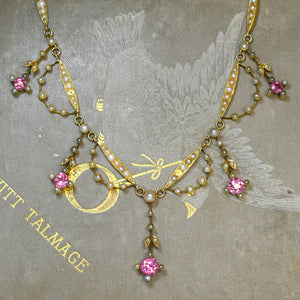 A fantastic antique example of the albert chain- this one is HUGE and comprises two solid rose gold fancy-link chains. Dating from the Victorian period with English hallmarks for London, the year 1896 and 9k gold. The chunky fancy-links feature gorgeous foliate and floral engraving throughout, and each one ends with two bolt rings and dog clips. They're connected by a large detailed t-bar, and it has a wearable length of 22 inches. Its a great size (huge, actually), and weighs in at a perfect 100 grams!