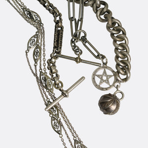 A cool antique bracelet set with nine moonstones, that graduate in size across the wrist, and display a gorgeous glow, with hints of blue when it catches the light. Crafted in silver throughout with silver links at each side of the stones. It dates from the Victorian period, circa 1880 with a 6.3 inches wearable length.