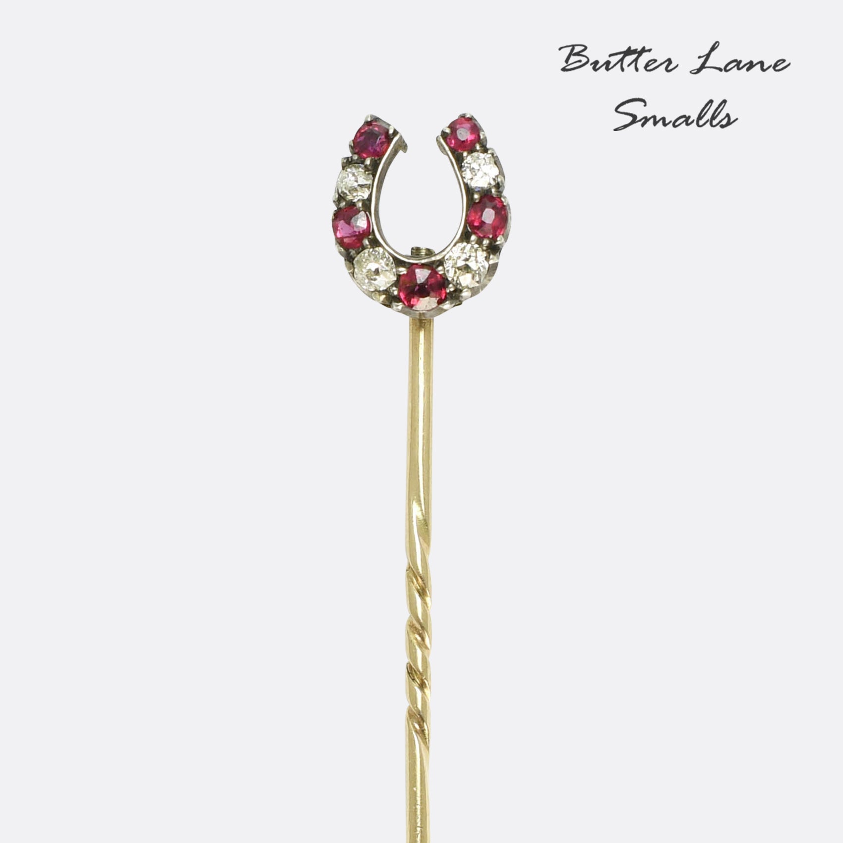 Victorian Ruby & Diamond Lucky Horseshoe Stickpin