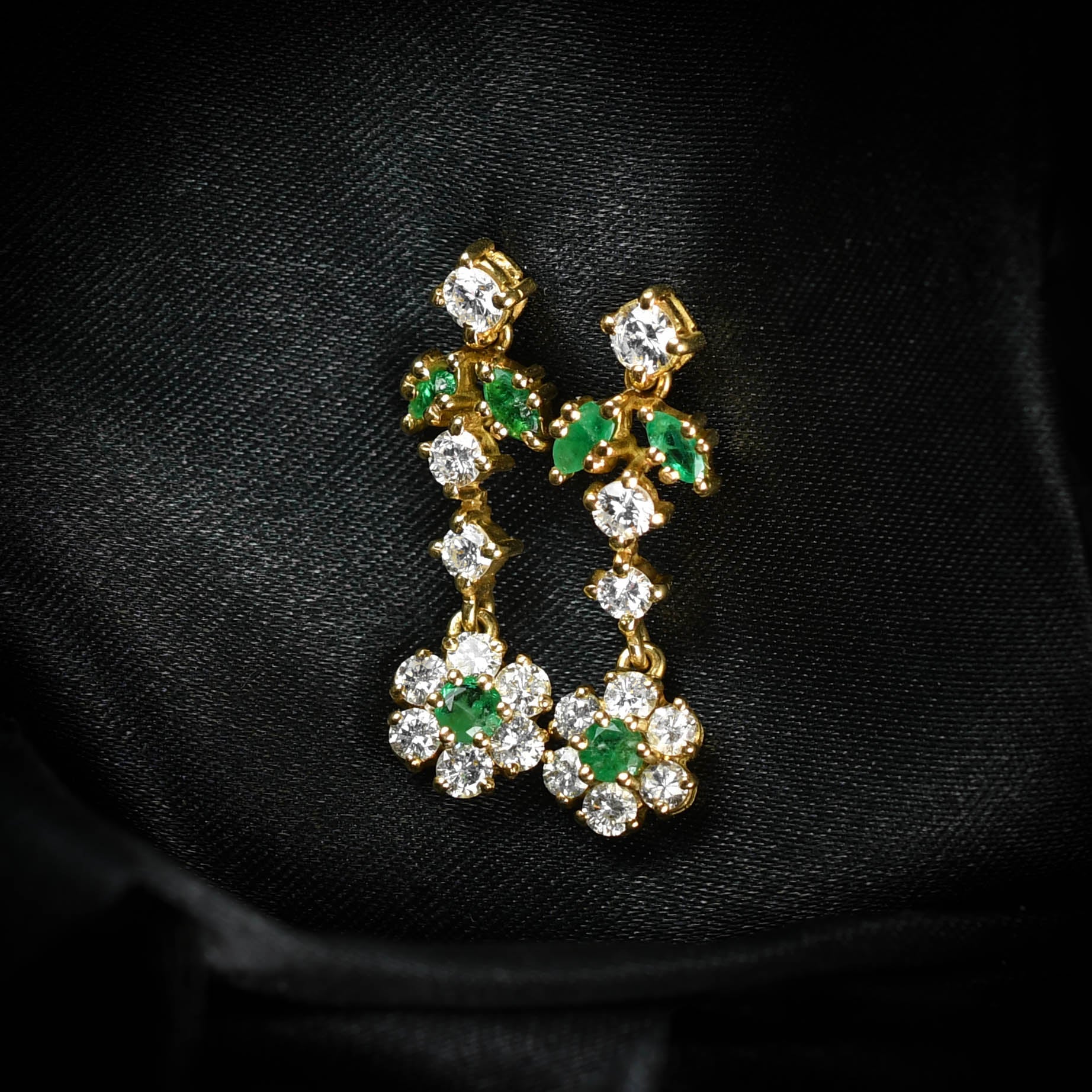 Vintage Emerald & Diamond Flower Drop Earrings