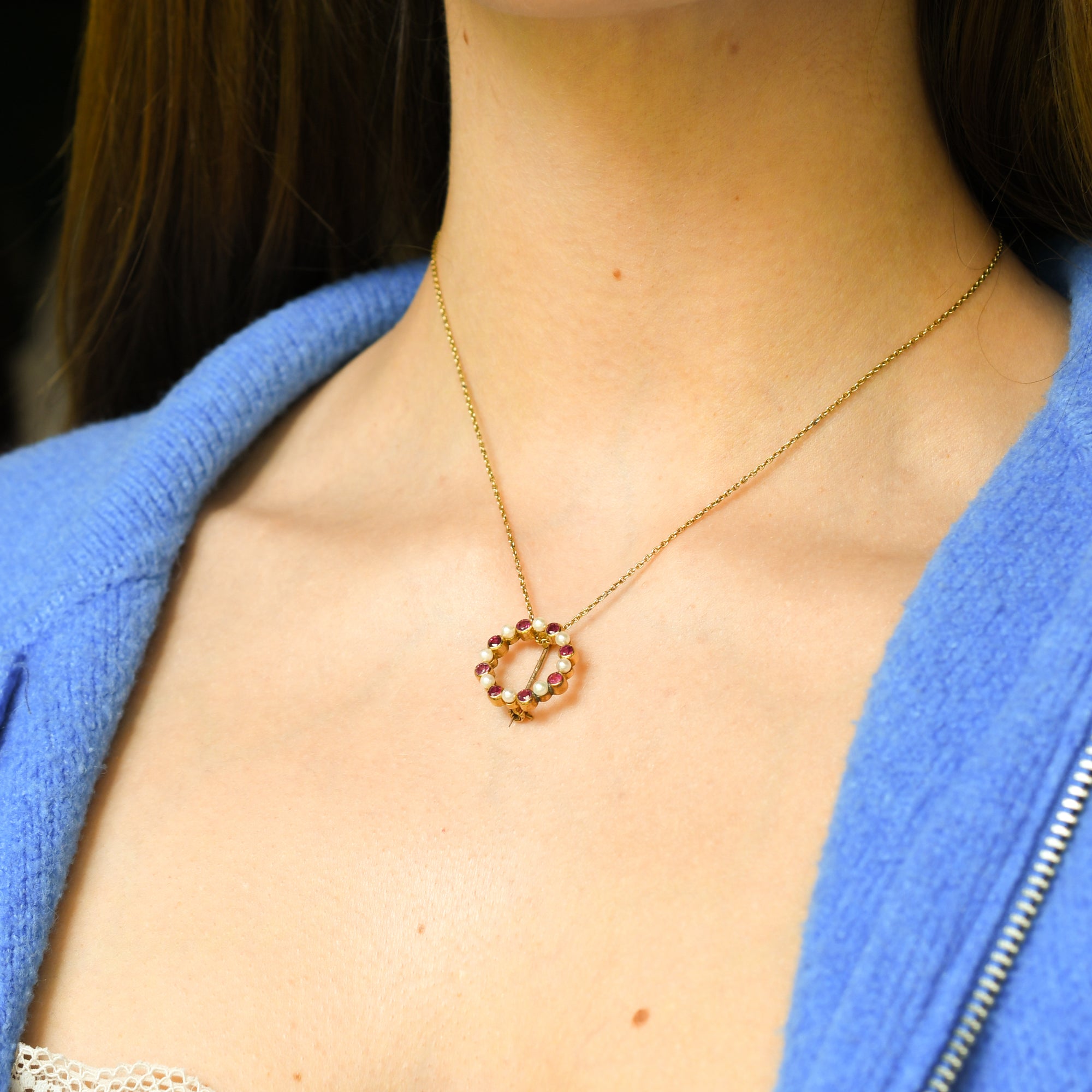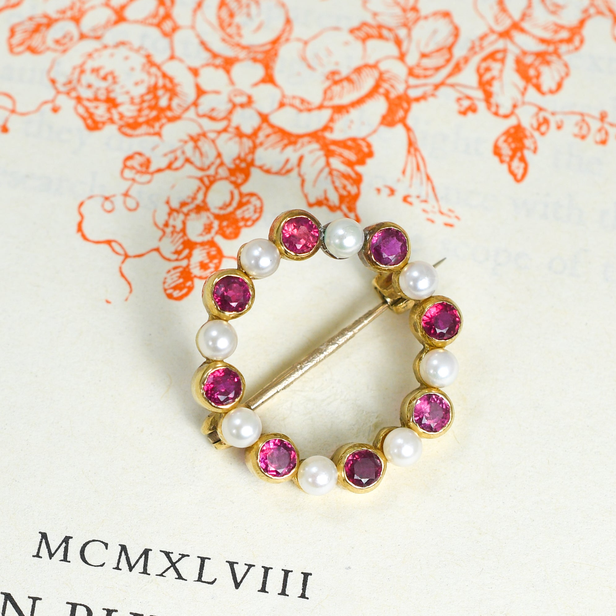 Vintage Ruby & Pearl Halo Brooch by Cropp & Farr